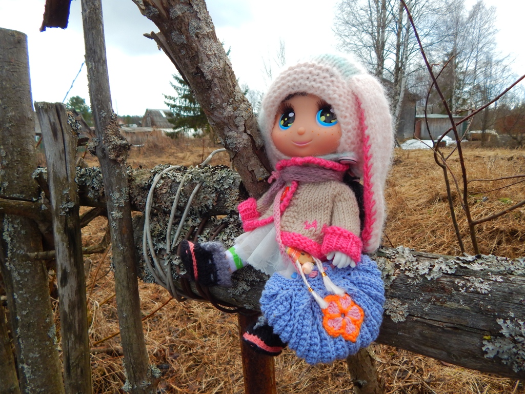Сегодня съездили на дачу, ничего сажать не стали, я просто топила в доме печь (чтобы семенная картошка быстрее прорастала) и устроила фотосессию кукле Минни, она, вообще-то, мышь, но ей очень хочется быть похожей на кукол Блайз, поэтому очень просила соответствующий наряд)))