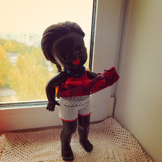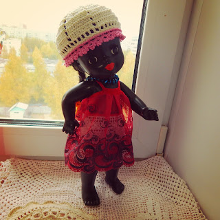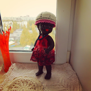 Куколку негритянку, купленную на "Уделке" решила назвать Абангой, а чтобы второе имя не пропадало, Джумокой стала маленькая вязаная куколка (тоже негритяночка)))